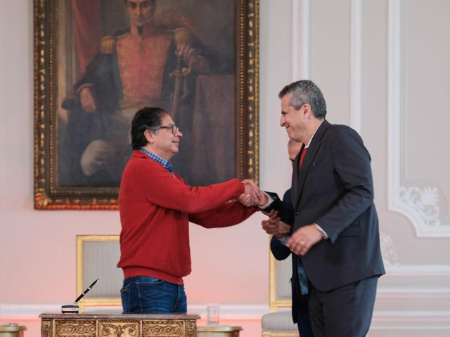 Luis Fernando Velasco el Ministro del Interior y Carlos Ramón González el secretario general de Petro van a negociar los puestos con los partidos.