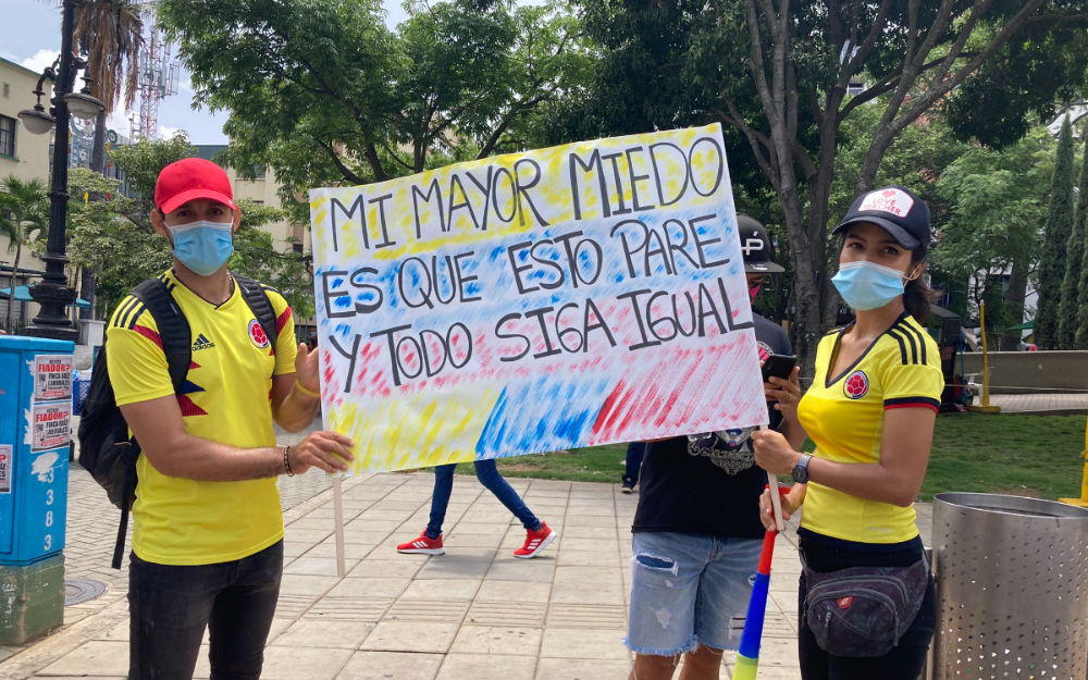 “¡El Esmad está desapareciendo personas!”, grita una mujer desesperada, andando en una moto mientras persigue un camión con policías que lleva adentro un detenido. “¡Su cédula y su nombre!”, pregunta al detenido, una medida para dejar constancia de su identidad. El video fue difundido en redes por la cantante Adriana Lucía y ha sido reproducido […]